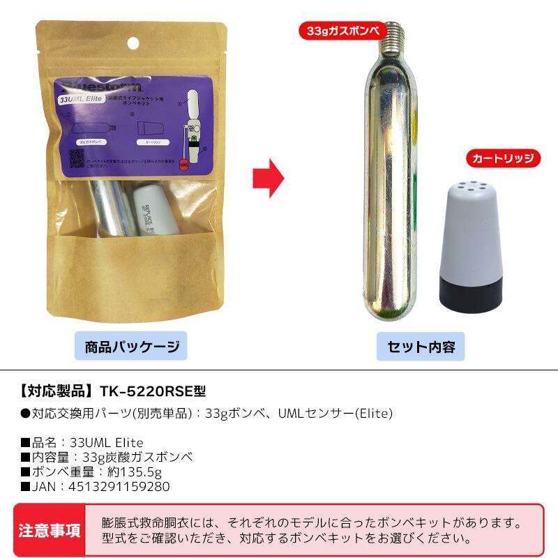 33UML Elite 自動膨張式ライフジャケット 交換用ボンベキット UML社製 対応型式TK-5220RSE型