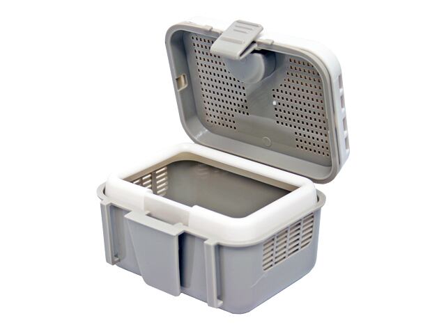 蓋と本体両サイドに通気口を設置し、通気性が良く日除けカバーも搭載しているので、カニや虫エサが弱りにくい専用設計。落とし込み釣りに最適。カニ・虫類に最適!枠付き設計でエサが逃げにくい安心構造!通気性が良くエサ活き活き!ベルト通し穴付!■品名:ベイト7■サイズ 外寸(約):115×95×66mm 内寸(約):102×72×52mm■製品重量:約90g■JAN:4963189185646■素材:耐衝撃性コーポリマー■メーカー:明邦化学株式会社