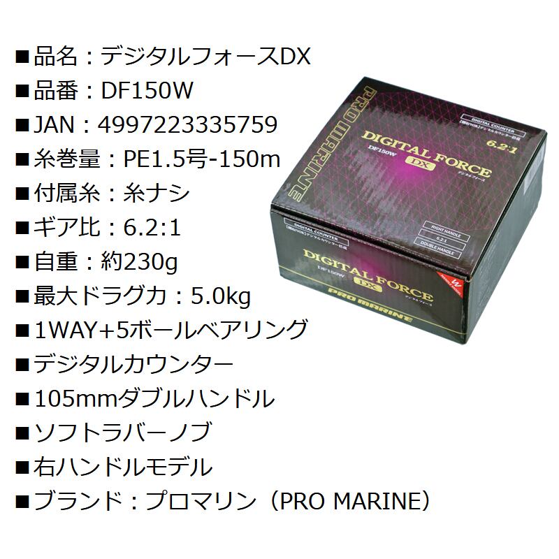 ベイトリール デジタルフォースDX DF150W PE1.5号150M糸ナシ プロマリン PRO MARINE 釣り具
