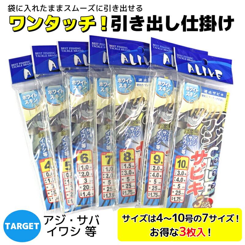 KMY-113 アジクラブサビキ 3枚入 ホワイトスキン 波止サビキ サビキ釣り ALIVE 釣り具 仕掛け
