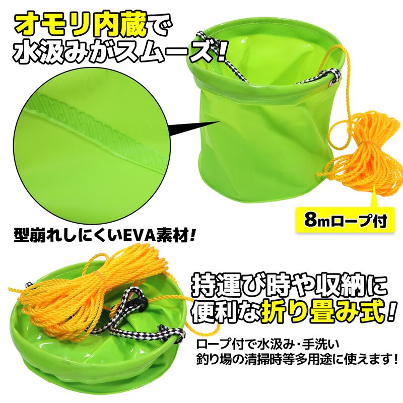 KP-065 EVA反転バケツ 丸型 18cm (色は選べません) 8mロープ付 ALIVE 水汲みバケツ 釣り具