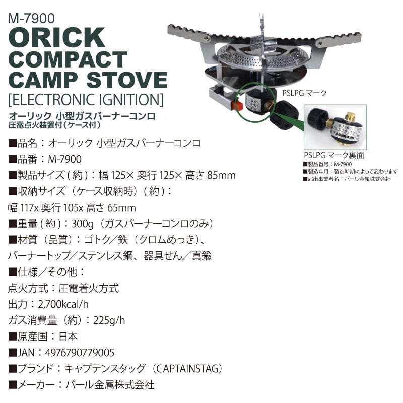 オーリック 小型ガスバーナーコンロ M-7900 パール金属 キャプテンスタッグ アウトドア