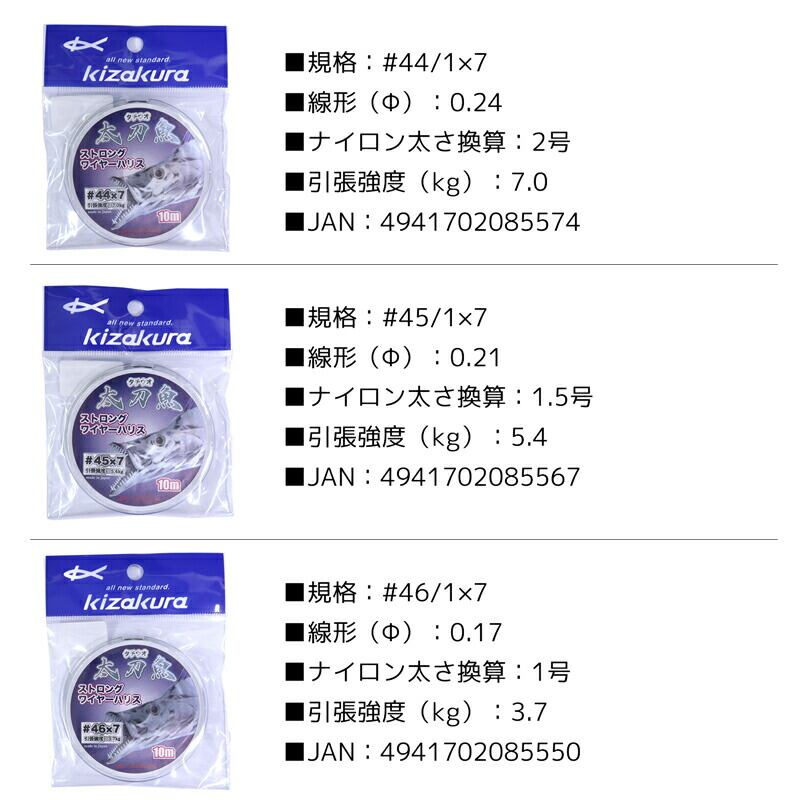 太刀魚 ストロングワイヤーハリス 10m キザクラ 釣り タチウオ