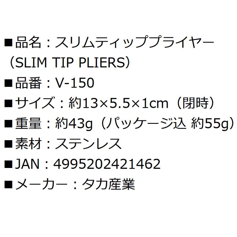 スリムティッププライヤー V-150 #00対応 SLIM TIP PLIERS タカ産業 釣り具