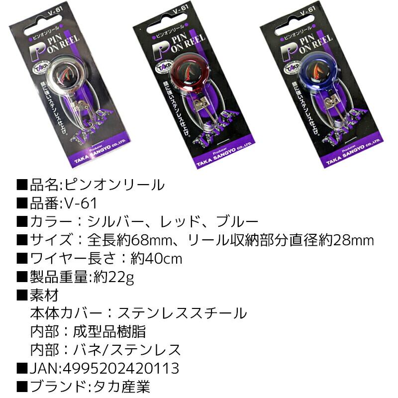 ピンオンリール V-61 ステンレスワイヤー 最長時40cm タカ産業 釣り具