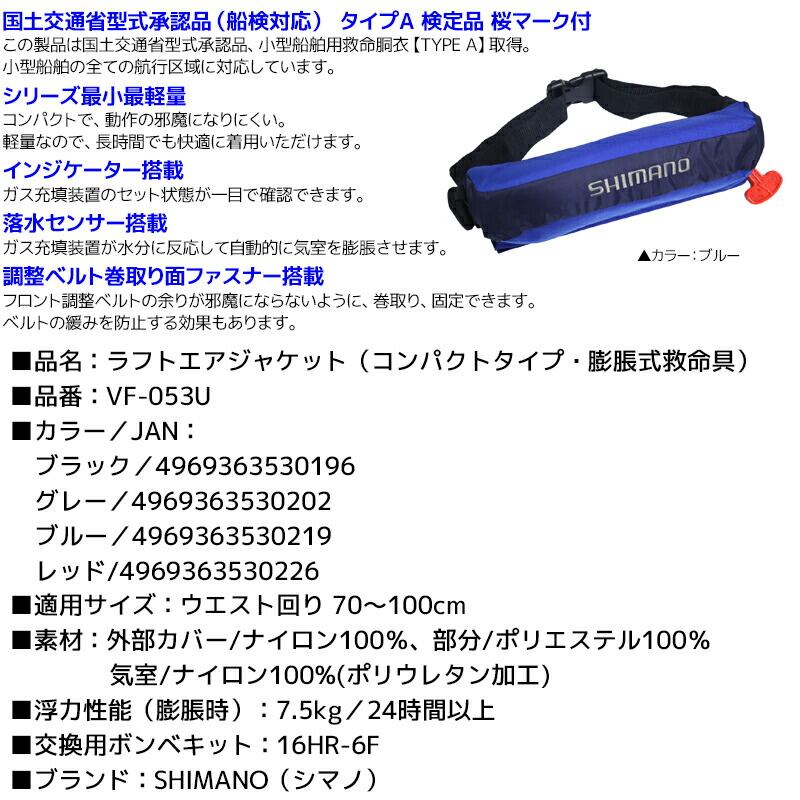 自動膨張式ライフジャケット ラフトエアジャケット コンパクトタイプ 膨脹式救命具 SHIMANO 国交省認定品 タイプA 検定品 桜マーク付