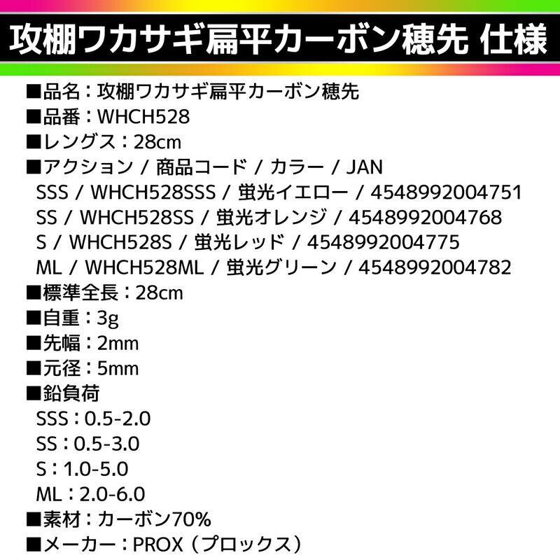 攻棚ワカサギ扁平カーボン穂先 28cm WHCH528 元径5mm わかさぎ釣り PROX