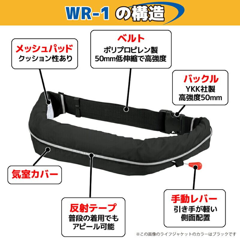 自動膨張式ライフジャケット ベルト式 オーシャン WR-1型 桜マーク付タイプA 国交省認定品検定品 釣り