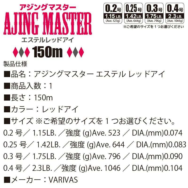 VARIVAS アジングマスター エステル レッドアイ 0.2号/1.15LB. 150m 次世代エステルライン 釣糸 釣り具 フィッシング