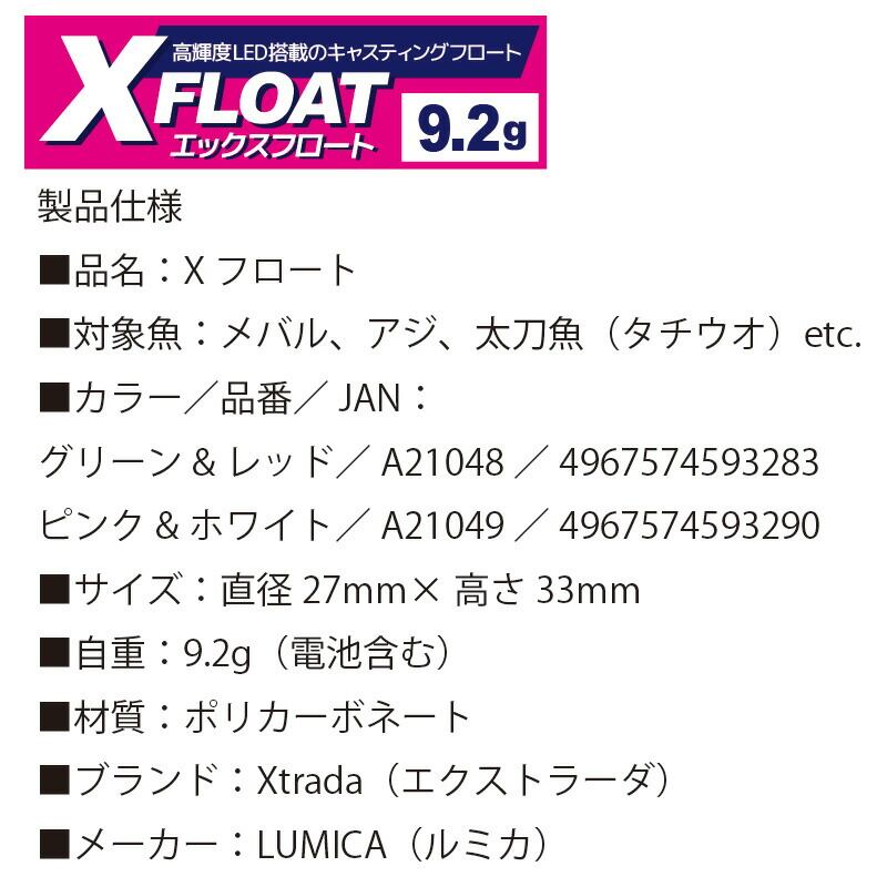 LEDキャスティングフロート ルミカ Xフロート グリーンレッド 直径27mm×高さ33mm Xtrada 釣り具