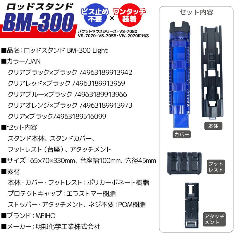 ロッドスタンド BM-300 Light 65×71×333mm 穴径45mmネジ不要 バケットマウス用 明邦化学工業 MEIHO 釣り具