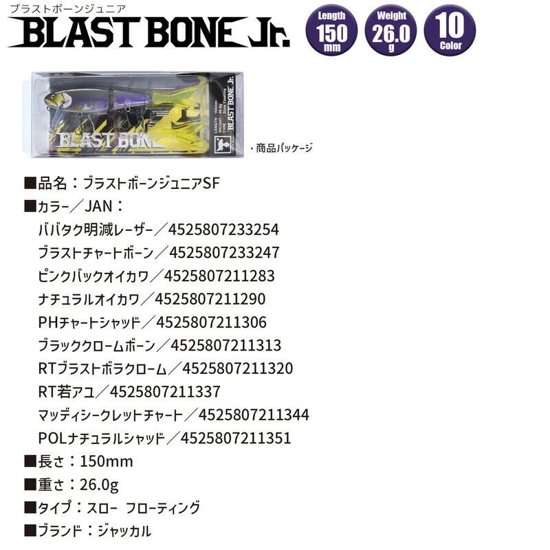 ブラストボーン ジュニア SF 150mm/26.0g ジャッカル ルアー クリアランス価格