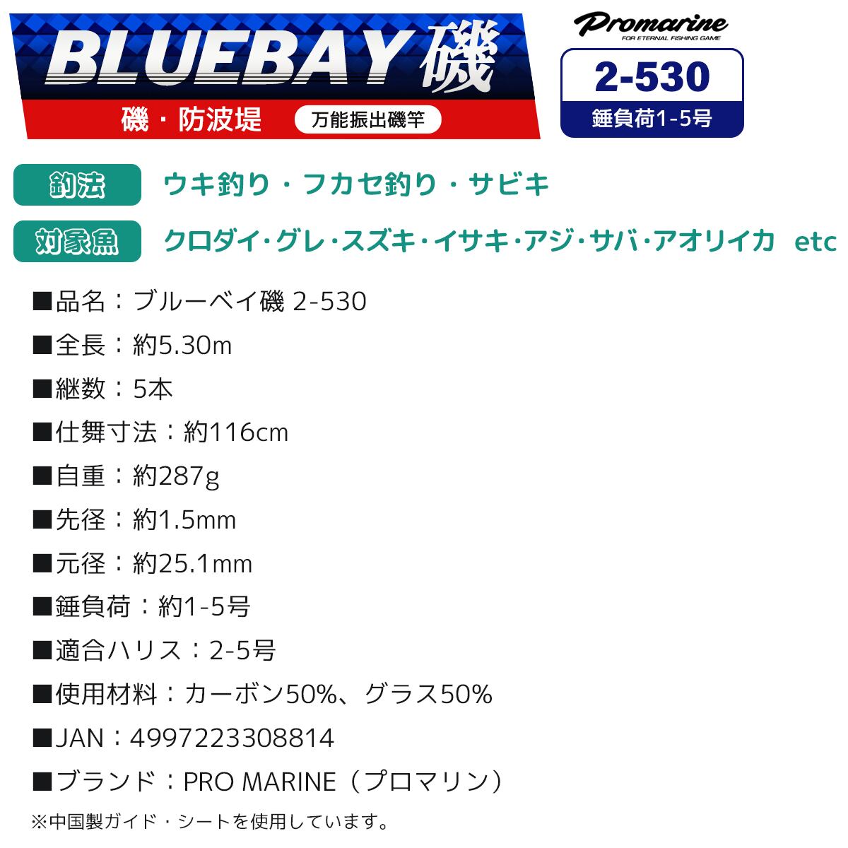 ブルーベイ磯 2-530 万能振出磯竿 全長5.3m フカセ ウキ釣り サビキ釣り 防波堤 PRO MARINE