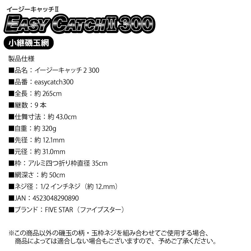 FIVE STAR イージーキャッチ2 300 全長265cm 仕舞43cm アルミ四つ折り枠直径35cm 玉網 釣り具