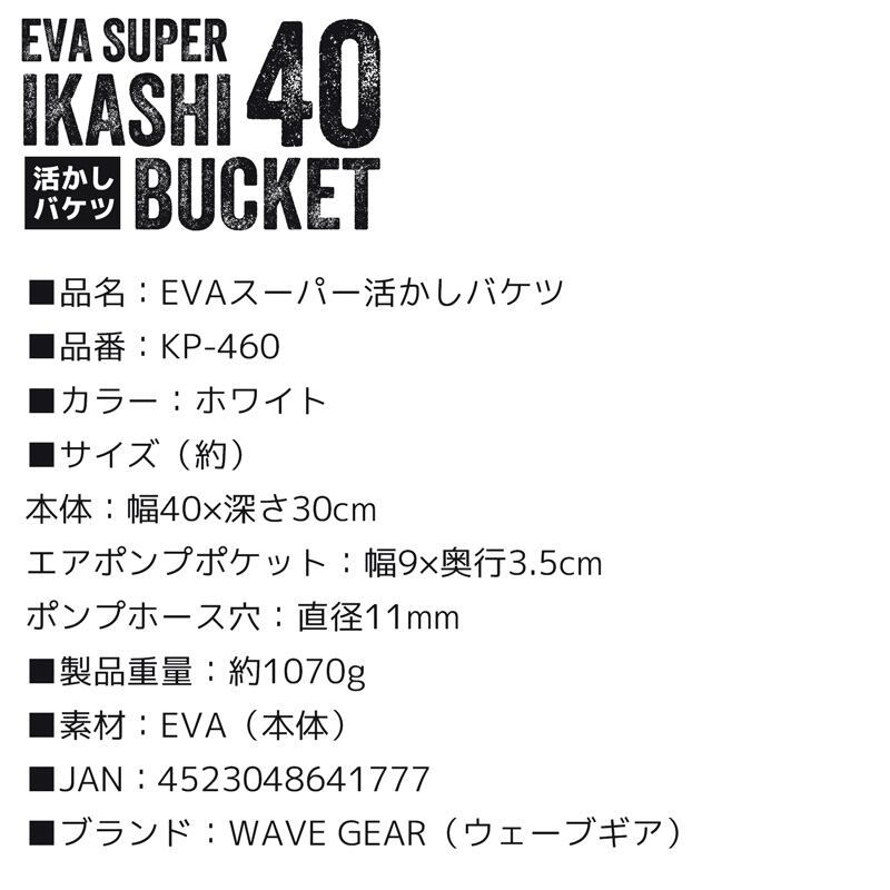 WAVE GEAR EVAスーパー活かしバケツ 40 丸型 ポンプ用ポケット付 40×30cm KP-460 バケツ 釣り フィッシング
