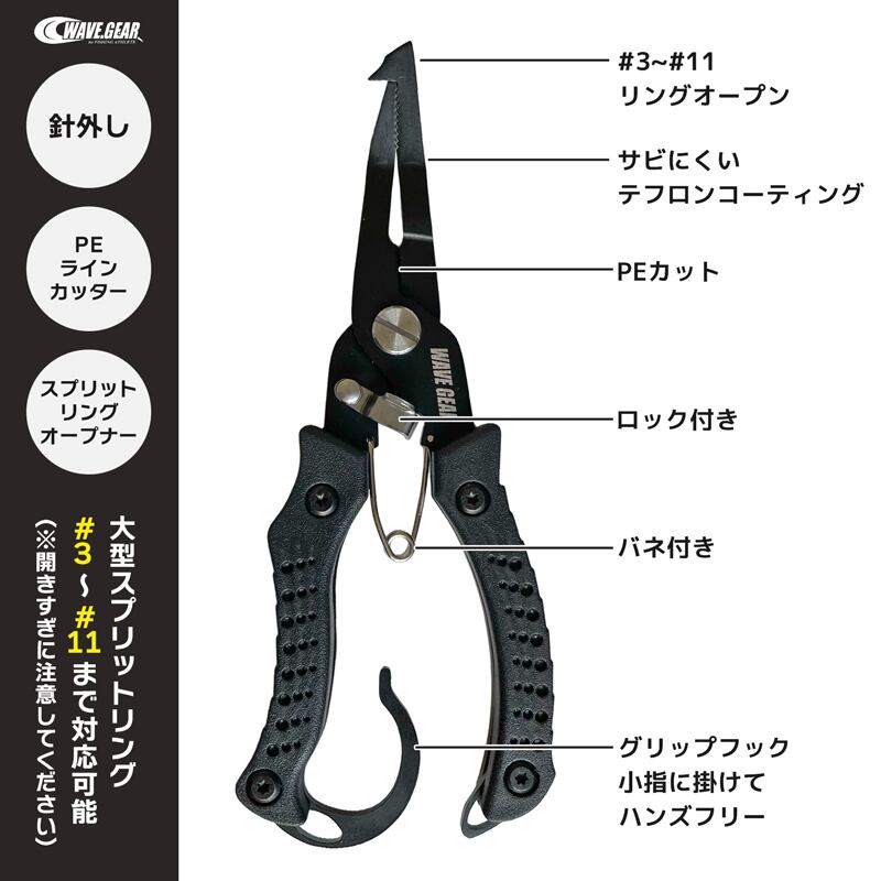 WAVE GEAR フィッシュゲームプライヤー ロック付き スプリットリングオープナー 針外し PEラインカッター KP-518 釣具