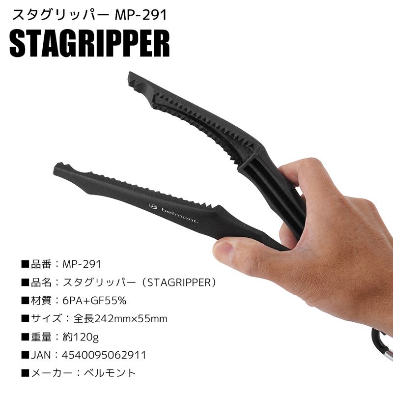 ベルモント スタグリッパー MP-291 ロック機能付 カラビナ付 242mm×55mm フィッシュグリップ 魚つかみ 釣り
