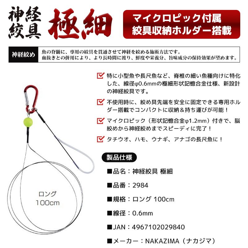 NAKAZIMA 神経絞具 極細 ロング100cm 線径0.6mm マイクロピック付属 神経絞め 釣り