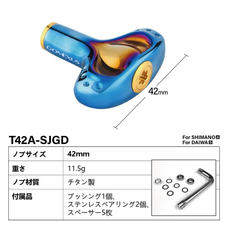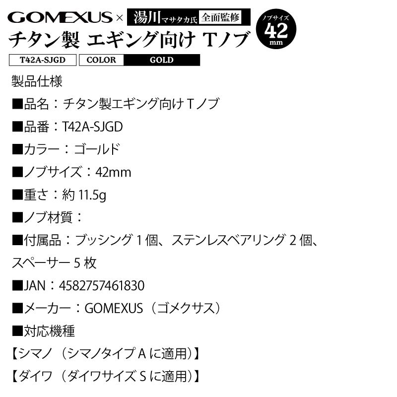 GOMEXUS チタン製 Tノブ T42A-SJGD ゴールド 42mm 湯川氏監修 エギング向け