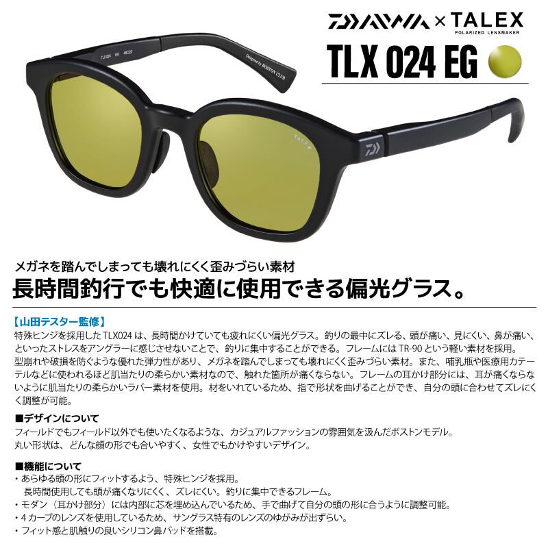 ダイワ 偏光サングラス TLX 024 フレームマットブラック レンズ イーズグリーン ハードケース メガネ拭き2枚付 TALEXタレックス