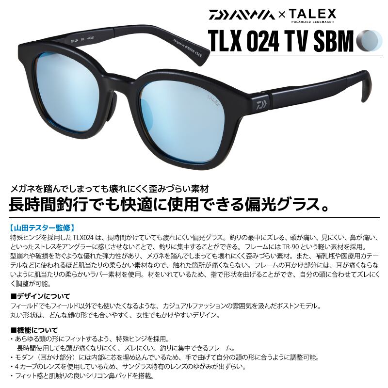 ダイワ 偏光サングラス TLX 024 フレームマットブラック レンズ トゥルービュー シルバーブルーミラー ハードケース メガネ拭き2枚付 TALEXタレックス