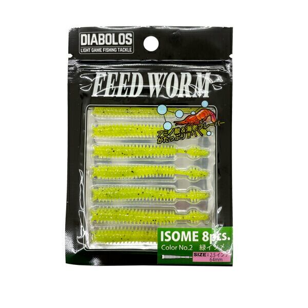 ソフトワーム フィードワーム 2.5インチ No.1赤イソメ 長さ約64mm 8本入 イソメ KG-357 ディアボロス 釣り具