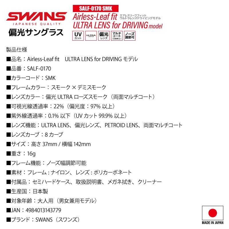 スワンズ 偏光サングラス SALF-0168 GMR Airless-Leaf fit ULTRA LENS for FISHINGモデル 専用ケース+メガネ拭き付